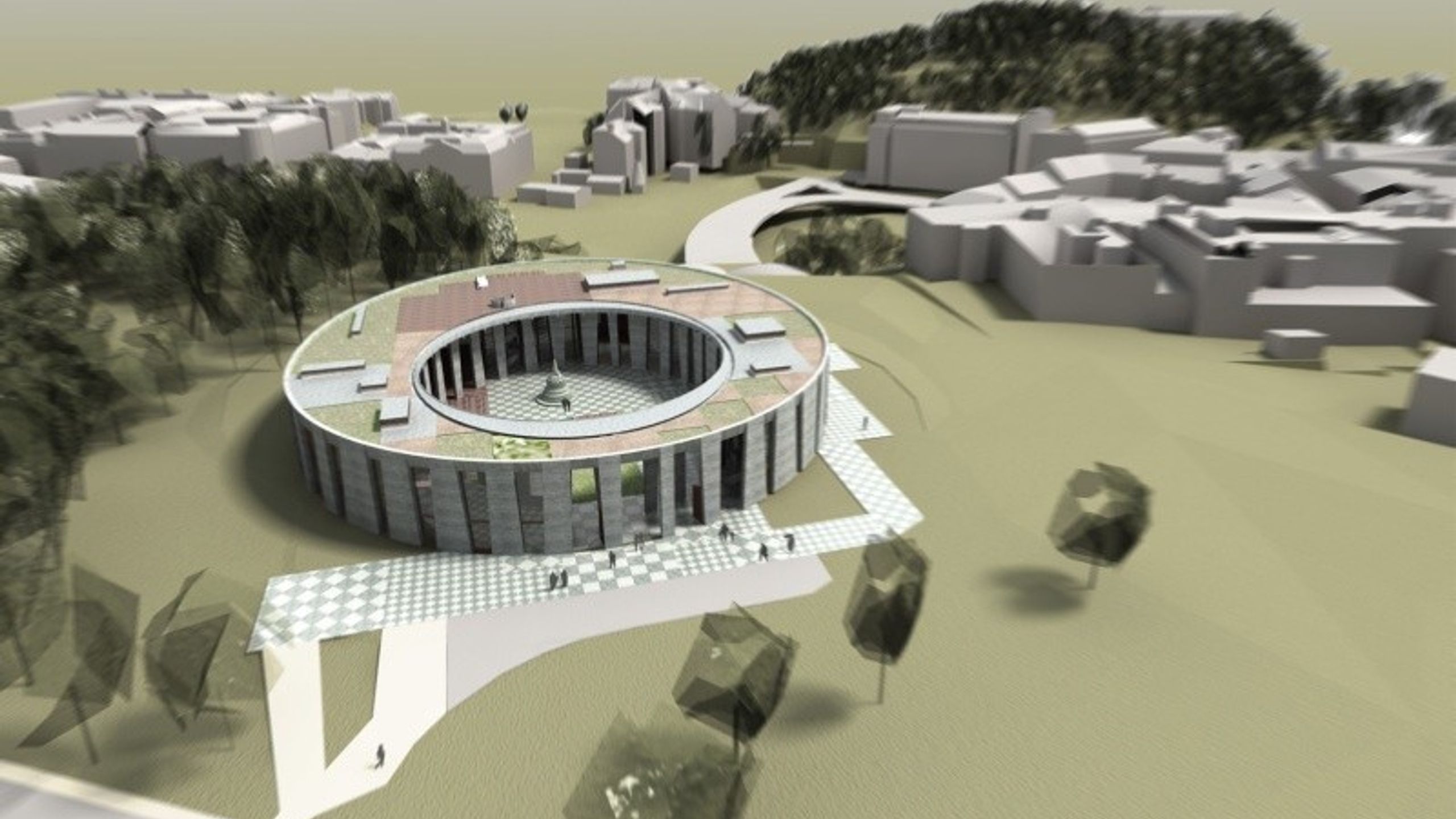Navrhovaný objekt je centrální stavba, téměř ze všech stran obklopena parkem. Obrací se především do sebe, do svého středu, kde vytváří vlastní svět s intimní atmosférou, ale spojený s vnějším světem štěrbinami
