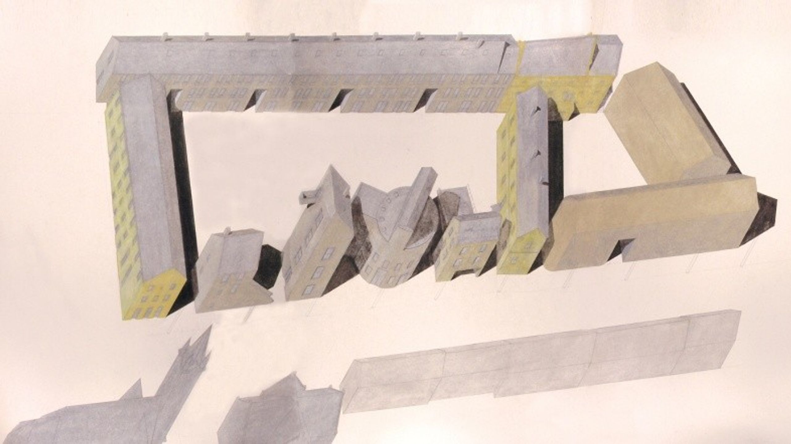 Ke dvoru doléhají tři různé druhy zástavby, je třeba na ně dvůr napojit- pěšími cestami, schodišti, průchody. Okolní zástavbu zahustit, dotáhnout až k mohutným stěnám dvora.