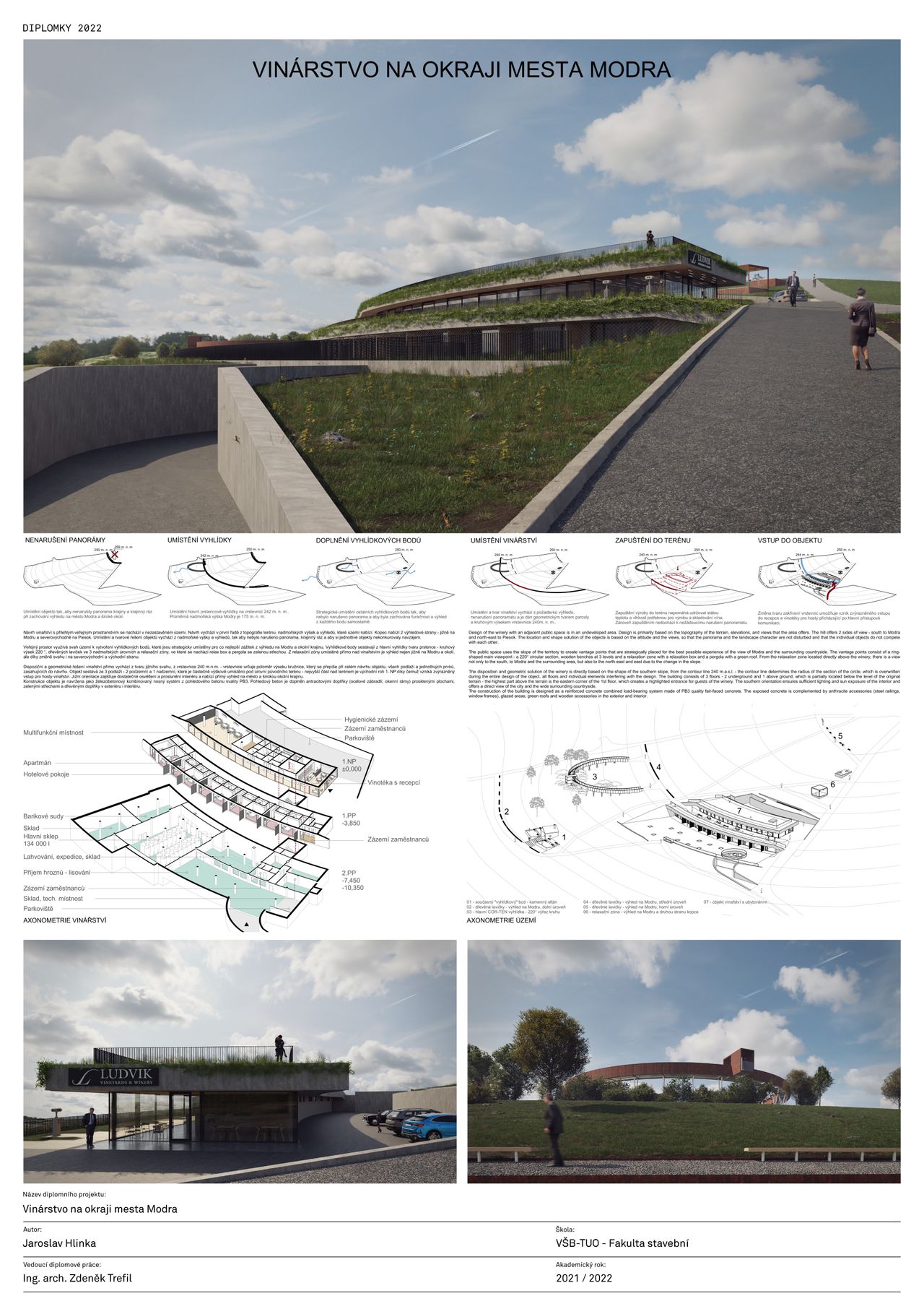 Návrh vinařství s přilehlým veřejným prostranstvím se nachází v nezastavěném území. Návrh vychází v první řadě z topografie terénu, nadmořských výšek a výhledů, které území nabízí. Kopec nabízí 2 výhledové strany – jižně na Modru a severo východně na Piesok. Umístění a tvarové řešení objektů vychází z nadmořské výšky a výhledů, tak aby nebylo narušeno panorama, krajinný ráz a aby si jednotlivé objekty nekonkurovaly navzájem.