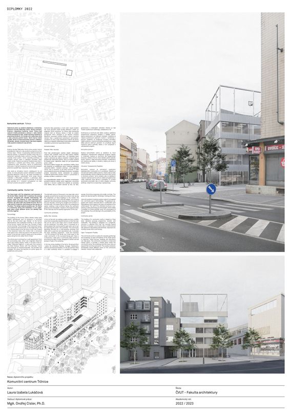 Práca sa zaoberá adaptáciou a dostavbou priestorov bývalej Žižkovskej tržnice. Skúma existujúcu štruktúru, rozpoznáva hodnotné, nosné. Tržnica pod vplyvom mnoha prestavieb a nánosov v sebe nenesie mnoho pôvodných prvkov. Avšak samotnou hodnotou je priestorová štruktúra, 13 m široká a 60 m dlhá hala, ktorá v sebe uchováva pamäť miesta. Návrh skúma možné využitie, témou sa stáva komunitné centrum s dielňami. Cieľom je vytvoriť nový vzťažný bod, miesto otvorené širokej verejnosti, kde ľudia môžu tráviť kľudne aj celý deň, prácou, výukou či odpočinkom.