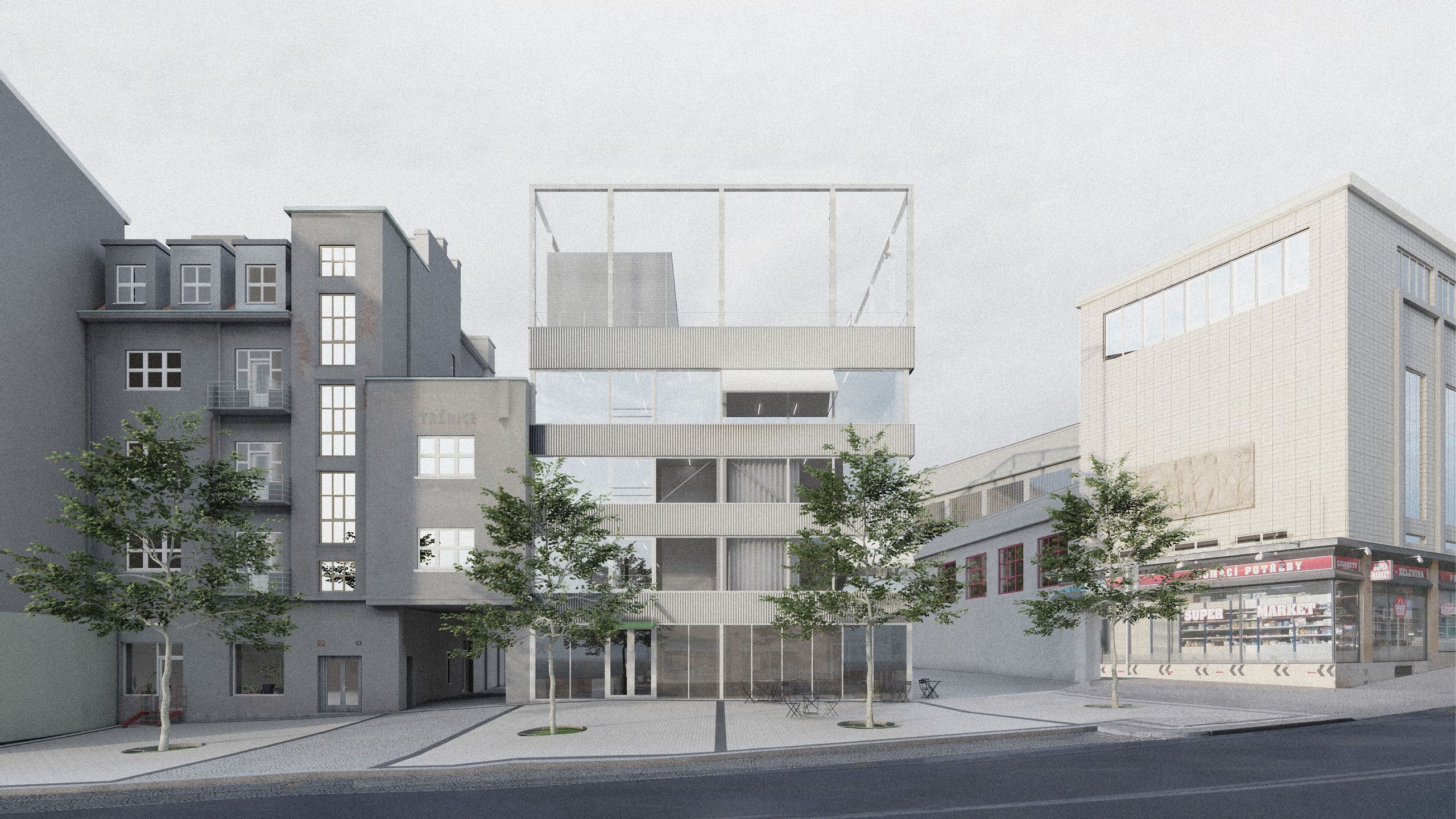 Pred halu predstavujem subtilný objekt, predsieň, ktorá do seba pojíma niekoľko funkcií tak, aby bolo možné halu využiť a zároveň zachovať jej charakter. Predsieň je poňatá ako rôznorodý priestor, kde je možné venovať sa kľudnej práci, odpočinku alebo len pozorovať práce v dielni. Komunitná dielňa funguje ako viacúčelová dielňa, ktorá plní praktickú aj vzdelávaciu úlohu. Do ulice Koněvova umiestňujem novostavbu komunitného centra. Spolu s dielňami vymedzujú nové verejné priestranstvo -plac/komunitný dvor- do ktorého môžu v letných mesiacoch rozšírovať svoje aktivity. Komunitného centrum je navrhnuté ako pragmatická štruktúra, utilitárna forma, ktorá dokáže poňať niekoľko funkcií, zahŕňa v sebe komunitnú kaviareň, multifunkčný sál, zázemie pre spolky, učebny a strešnú terasu.