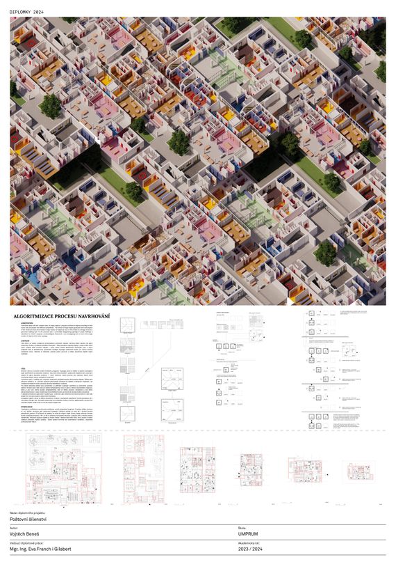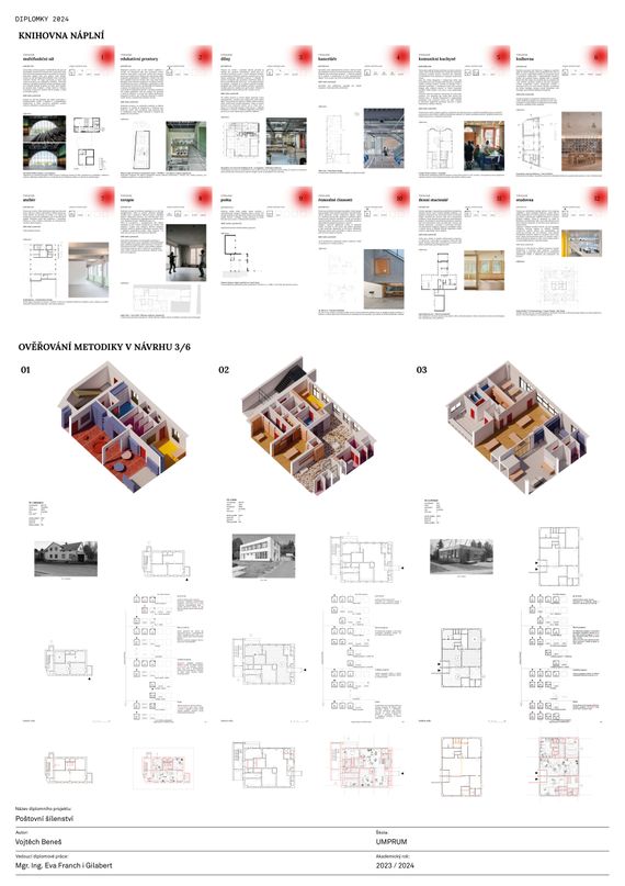 Identifikuji potenciálně zanikající typologie poštovních budov, pro kterou navrhuji metodický rámec. Zabývám se hledáním způsobu jakým pracovat s velkým množstvím objektů stejné typologie. Ve snaze nahradit prostorové ověřovací studie vzniká prototyp algoritmického procesu, který slouží pro bližší určení náplně objektu. Tento proces funguje rozdílně v závislosti na velikosti zkoumaného objektu. Pro nejmenší je ověřením kompatibility a postupně přechází přes kombinatoriku do podpůrné pomůcky pro efektivní zónování objektů.