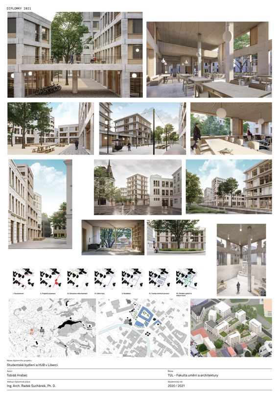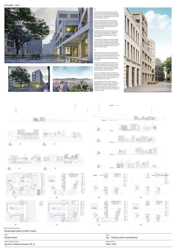 Práce se zabývá hledáním vhodné typologie a formy pro studentské bydlení v Liberci a další přidružené provozy jako je stravování, pracovní prostory nebo bydlení pro absolventy a učitele. Urbanistické doplnění lokality, mezi ulicemi Široká a Barvířská.